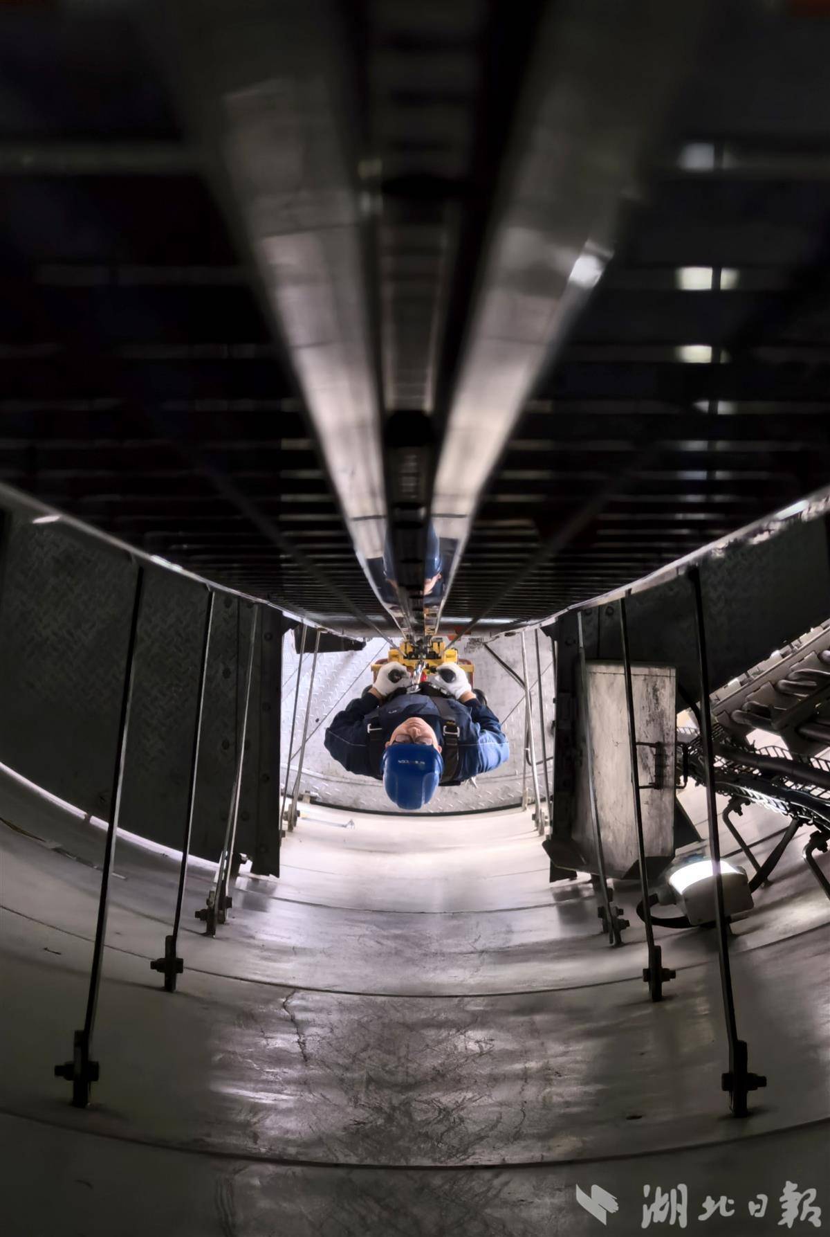 塔身内遍布密密麻麻的螺丝,李选佳和同事仔细检查每一个螺丝的紧固度。
