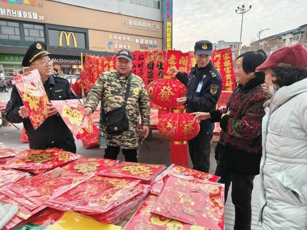部署完毕,队员们分组奔赴社区、广场、街巷等一线,开启新春巡查服务。在社区广场,不少商户忙着售卖福字、对联、中国结等年货。队员陈祖兵与队友罗凯巡查至此,没有简单执法,而是先送上新春祝福,再耐心提醒商户规范经营、保持摊位整洁。看到商户忙得不可开交,两人主动上前搭把手,帮忙整理货品、吆喝招揽生意,用接地气的举动拉近与商户的距离。