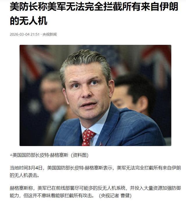 虽然当前尚未有证据确认“林肯”号是否遭到直接击中,但美国国防部长赫格塞斯却在4日承认,尽管美军在前线部署了多种反无人机系统,但仍然难以拦截所有来自伊朗的无人机袭击。这一表态无疑增添了伊朗军方通报的可信度,也让我们不禁发问:一个号称拥有全球最强海军的国家,为何在面对伊朗的无人机威胁时显得如此狼狈?